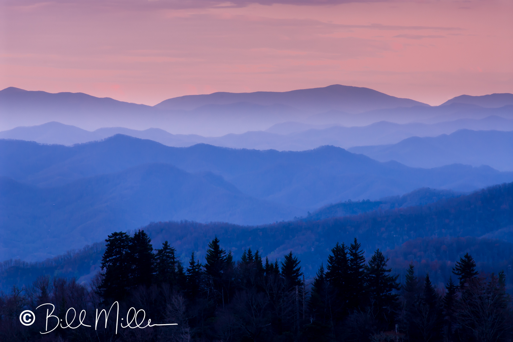 Great Smoky Mountains National Park, the most visited national park in the United States, straddles the border between Tennessee and North Carolina, but all the photographs from both states are in this gallery.The park is renowned for its diverse ecosystems, rich wildlife, breathtaking mountain vista, and streams with rocks and boulders covered in bright green moss. There are over 800 miles of hiking trails, including a segment of the Appalachian Trail. Being mountainous, most trails have significant elevation change. Bears, deer, and elk are plentiful, and many a traffic jam are caused by animal watching, so keep an eye open. In the spring, wildflowers are stunning, and the park is a visitor magnet in October for the autumn leaves.