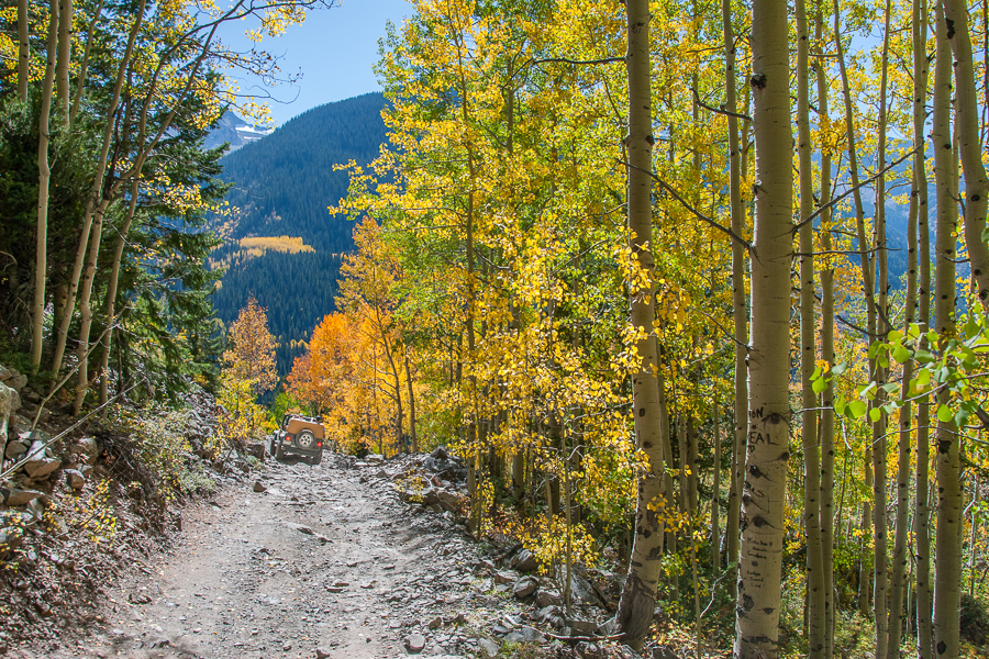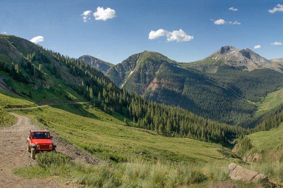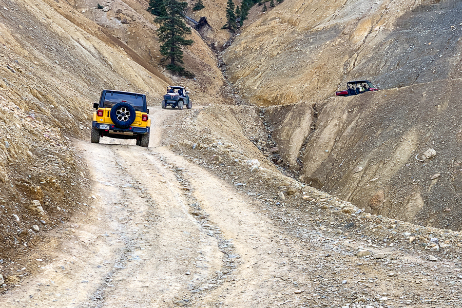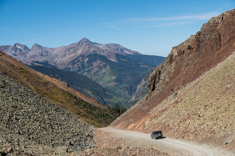 For purposes of this website, “backcountry” refers to any location NOT accessible by a paved highway; that means a range of easy to difficult roads, from graded gravel roads suitable for most any vehicle to steep, challenging rocky “trails” requiring high clearance, short wheelbase, 4-wheel drive vehicles. Many of the rugged but highly scenic off-road opportunities evolved from Colorado’s mining history in the 1800’s. Miners created these rough paths to transport ore to towns. Similarly, narrow-gauge railroad lines were built for the same reason. With tracks considerably closer together, these trains could navigate tighter turns in mountainous terrains. (See the Durango & Silverton Railroad gallery).